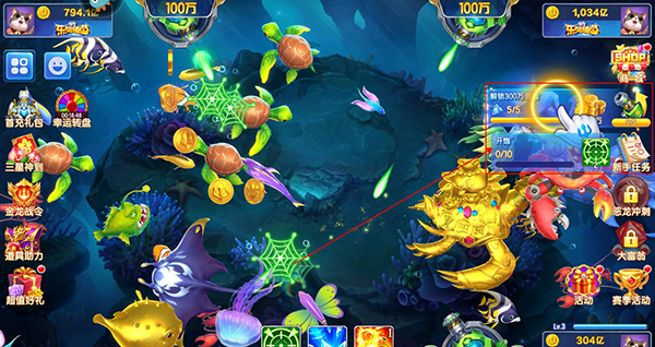 1、瞄准高价鱼类捕捉。不同颜色的鱼类价值不同,金色、黄色、蓝色等颜色的鱼类通常价值较高,优先捕捉这些鱼类可以快速获得金币。 2、使用技能。游戏中的技能,如炸弹和闪电,可以帮助玩家清理多个鱼类,从而获得大量金币。 3、完成任务。游戏中提供多种任务,完成这些任务可以获得丰厚的金币奖励。 4、定期升级炮台。提高攻击力,有助于捕获更高级的鱼类,从而获得更多金币。 5、合理运用道具。在BOSS出现时,使用道具如暴走模式,可以加快进攻速度,同时获得更多金币。 6、提高攻击力和炮速。炮速的提高可以让你更轻松地击杀鱼类,尤其是大鱼,从而获得大量金币。 7、进入双倍奖励区。在双倍奖励区内,玩家可以通过捕捉鱼群来快速赚取大量金币。