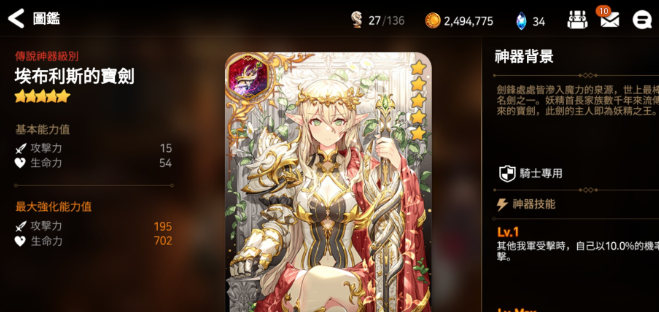 3、推荐神器:埃布利斯之枪(适合竞技场)、开辟之枪(专武)。
