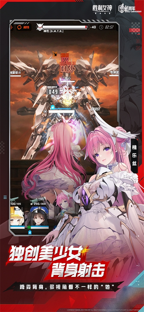 《胜利女神:妮姬》是以第三人视野角度的射击游戏,为能提供轻松享受射击的乐趣,游戏可开启自动攻击模式,轻松的单手操控; 游戏中视觉立体活泼,并利用 2.5D PAPER FOLDING 技术,让角色 1:1 的在游戏中逼真作战,角色丰富的跃动感,让玩家仿佛身历其境,体验战场上震撼的攻守厮杀。更新日志