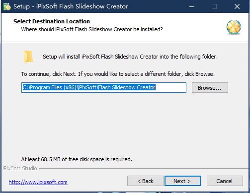 软件安装默认路径为:C:\Program Files (x86)\iPixSoft\Flash Slideshow Creator
