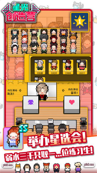 1、把你的小娱乐机构发展成一个全球性的顶级机构。2、签约众多偶像爱豆,选拔偶像成员,组建你的团体。 3、养成系统极为丰富,每个偶像都有自己独立的行为系统。 4、帮助他们不断学习更多的专业表演技能,体验超凡感。