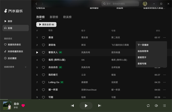 汽水音乐电脑版拥有广泛的音乐资源,涵盖了各种流派和风格的音乐。它提供了方便的搜索功能,用户可以通过输入歌曲名、歌手名或专辑名等关键词,快速找到自己喜欢的歌曲。当然还有热门排行榜、新歌推荐等功能,帮助用户发现和获取最新的音乐信息。