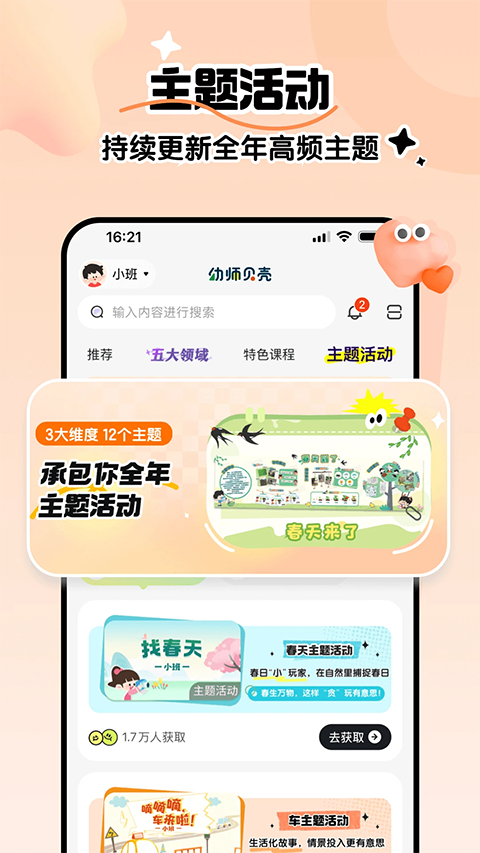 1、幼师贝壳App软件内多元化体系课程,海量幼教资源,精细分类,助力老师高效完成备课;