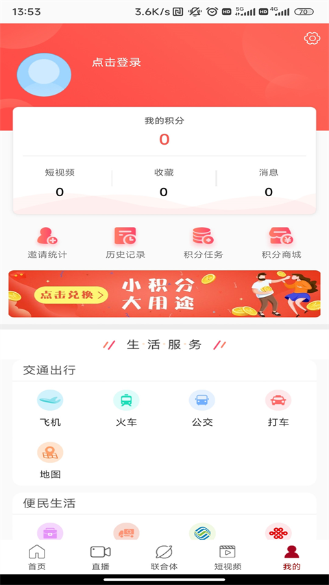 5、我的这里有交通、便民、娱乐专栏,以及综合服务。