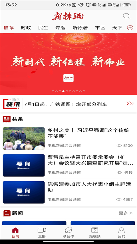 2、右划进入直播频道,这里直播的是本市的重要新闻;