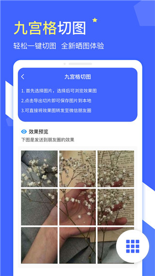 1、下载进入微商水印手机版,点击九宫格切图;