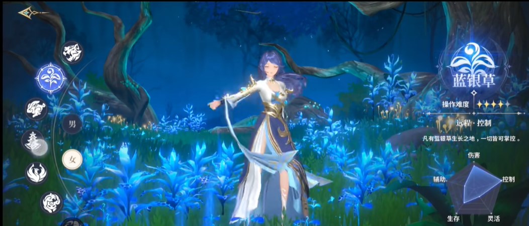 2、蓝银草,可以对敌人进行远程控制,限制敌人行动,方便队友进行输出。