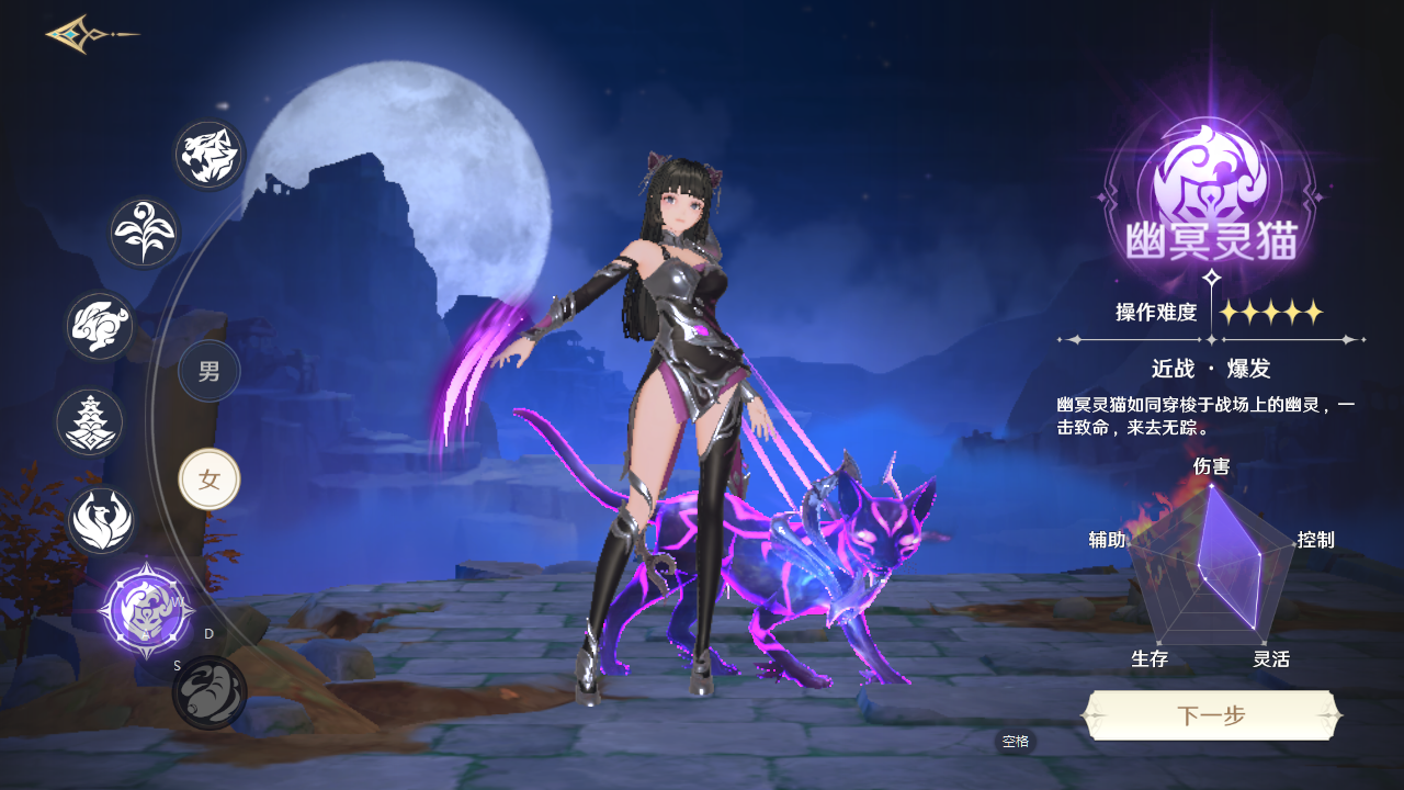 5、幽冥灵猫,属于近战类的刺客,主要是对敌方后排突击打出爆发伤害,需要一定的氪金能力才能获得。