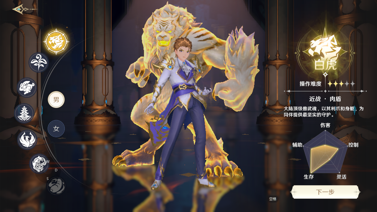 1、白虎,他的防御属性较高,可以放在前排抗伤,操作相对简单,还能给全队提供护盾,适合新手玩家。