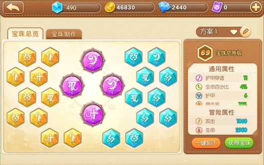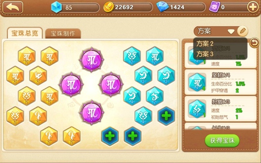 宝珠凹槽开启之后就可以镶嵌自己已经获得的宝珠。在镶嵌时,优先选择高等级的宝珠。在宝珠等级同样的情况下,则可以根据宝珠的属性来划分优先级。每人最多可以开启3套宝珠方案,大家不要忘了及时调整自己的战术和策略。