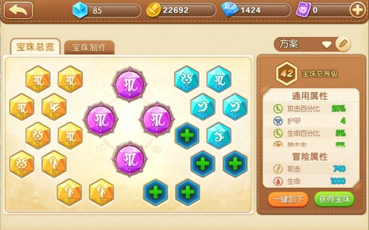 1、【系统解读 了解宝珠】 宝珠是战斗中的一种重要元素,可以极大的提升我们的战斗属性。手游中的宝珠主要分为3大类,即攻击宝珠、防御宝珠和特殊宝珠,不同类型的宝珠拥有不同属性的加成。攻击类宝珠可以增加攻击力、暴击伤害、暴击率或护甲穿透,防御类宝珠可以增加生命值、护甲、速度或怒气。特殊类宝珠虽然只拥有一种属性加成效果,但加成比例非常高。
