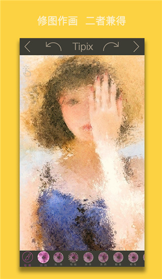 1、告别传统的编辑模式,利用新颖的涂抹进行照片制作; 2、进行自己的创作过程,图片更有文艺气息; 3、多种多样的样式组合供你选择; 4、每一个笔刷都有不同风格; 5、只需要简单的几步操作就可以制作完成; 6、让照片成为一件艺术品;