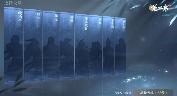 (1) 天缘 进入玩法后,玩家将依然使用自己的流派技能进行战斗,但开局可以选择一个“天缘”作为能力补充。当前玩法中存在8种天缘供选择,分别是:欧冶子、膳祖、屈原、鲁班、诸葛武侯、虞姬、霍去病、狄仁杰。 开局6人组队,每个人要从8个天缘中选择一项,不能重复。(当然,孤狼玩家也可以和AI队友一起玩)。 各个天缘的功能就不在这里一一介绍了,大家到时选择心仪的天缘,一试便知!
