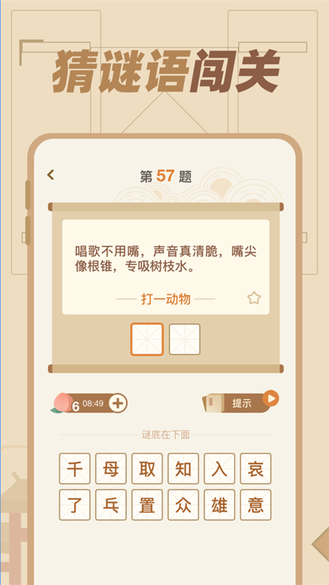 1.增加新春猜谜玩法和题库 2.性能优化,体验更加流畅 3.修复已知问题游戏截图