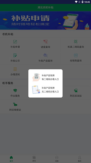 1、办理须知 2、经销商查询 3、补贴公示 4、进度查询 5、补贴产品查询 6、补贴申请 7、机手服务等更新日志