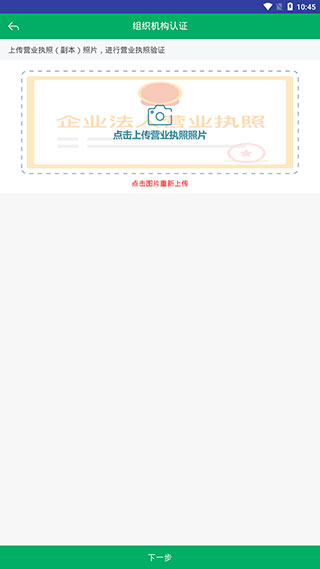 5、如果是组织机构申请,则需要【上传营业执照(副本)照片】后,再继续申请。
