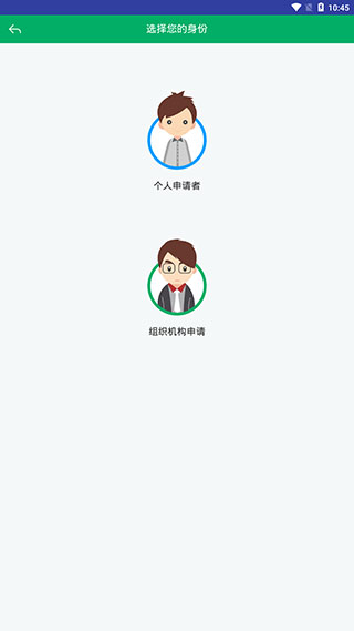 3、接着再根据自身的实际身份选择【个人申请者】或者【组织机构申请】。