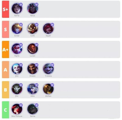 2、T1梯队:刀妹、卡牌、劫、阿狸、皎月、卡特、锐雯、小法
