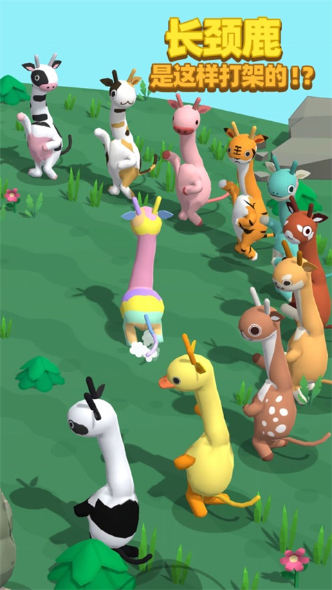 1、丰富皮肤 超多的游戏角色皮肤自由选择,打造属于你的全新长颈鹿形象。 2、休闲魔性 独特的休闲IO对战玩法,让玩家领略到越来越爽快的游戏体验。 3、平衡游戏 随着玩家的长颈鹿长大,脖子会越来越来长,不过攻击速度也会随之降低。 4、爽快激战 拿脖子打架,谁能获取胜利,在游戏中,玩家可以体验到不断成长的乐趣。 、长颈鹿是这样打架的新手怎么玩