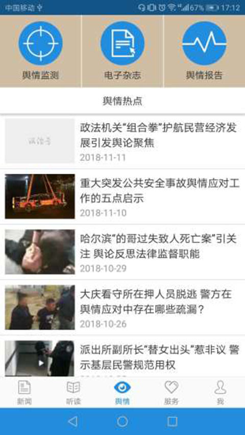 “法治号”手机客户端专设“舆情”模块,实时发布舆情热点、法舆观察、法治数读等独家栏目,帮助读者第一时间了解舆情动态。