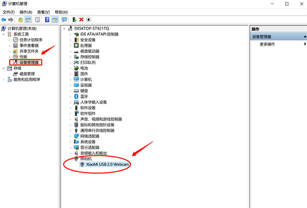 2、如果电脑有自带的摄像头先把它禁用,右击“此电脑”,选择“管理”,找到如图所示的,找到“照相机”下的驱动,右击选择禁用设备即可。