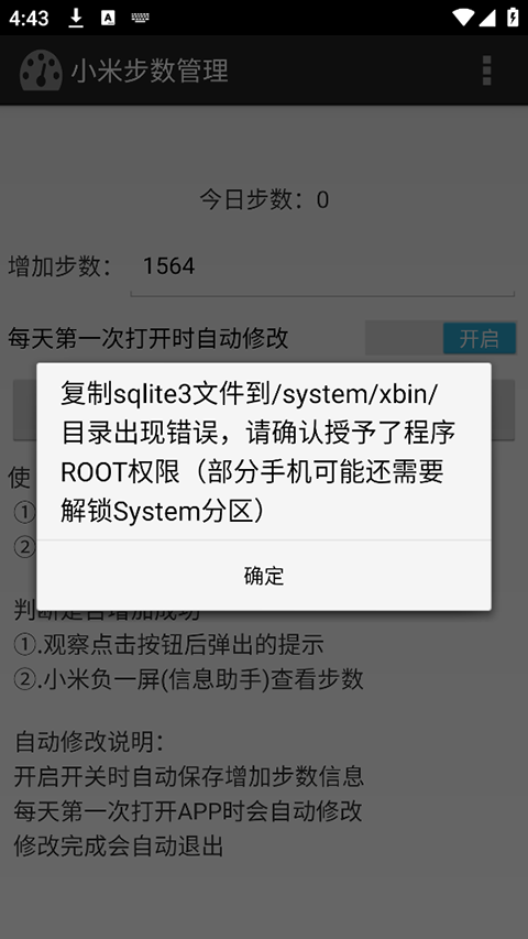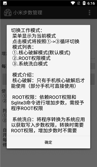 1、推荐小米手机使用,其他手机可能会出现不兼容的情况 2、手机需要获得root权限 3、系统最好是MIUI10及以下(高于MIUI10 Android8.1可能无效) 4、使用不了的问题是因为权限不足 5、微信、支付宝秒改步数,然后同步进微信或者支付宝,同步可能稍微有一小会延迟,修改完成直接划到负一屏可看到修改结果更新日志