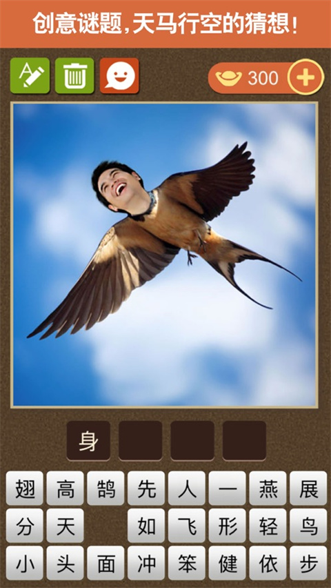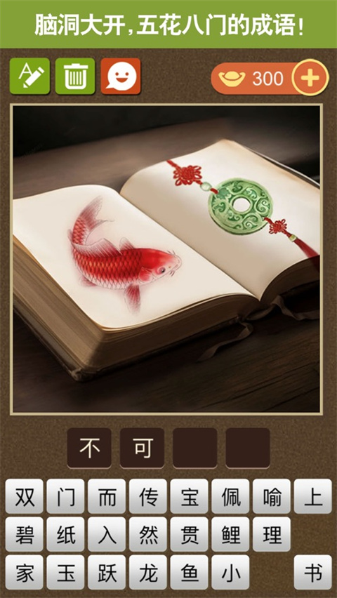1、寓教于乐: 通过猜成语的方式,让玩家在娱乐中学习和掌握更多的中文成语。每个关卡都附有成语解释和汉语拼音,帮助玩家理解成语的含义和发音。 2、多样化的关卡: 拥有1800多个成语关卡,每个关卡都通过一幅画或几个字来提示一个成语。题目诙谐有趣,独树一帜的创意让玩家在猜成语的过程中享受乐趣。 3、每日更新: 每日推送新关卡,保证玩家天天有新题可猜,让猜谜的热情不停歇。这样玩家可以持续挑战自己,不断学习和巩固成语知识。 4、竞赛活动: 每周举办竞赛活动,玩家可以与成千上万的成语玩家一决雌雄,有机会赢取丰厚的元宝大奖。这激发了玩家的竞争意识,增加了游戏的乐趣和挑战性。 5、社交互动: 支持Apple和微信登录,可以轻松同步游戏进度。此外,游戏还提供了古代人物表情包,让玩家在iMessage聊天中使用各种诙谐幽默的表情,增加了社交互动的乐趣。更新日志