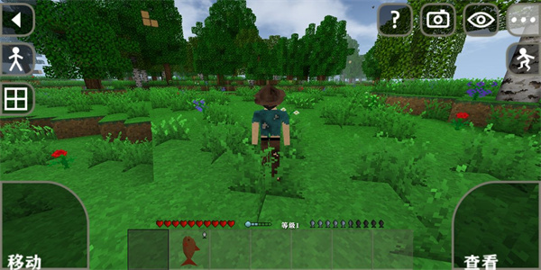 5、游戏中,玩家可以操纵角色进行移动和建造建筑,点击右上角眼睛图标,你还可以调整游戏视角;