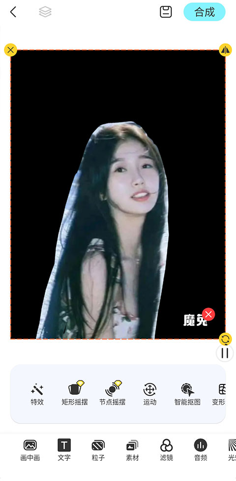 6、还可以抠图哦,都是免费的功能,完成后点击右上角的“合成”就可以保存到相册了。