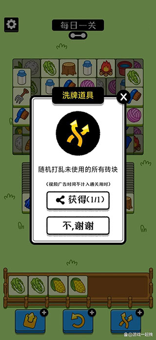 3、洗牌道具是个人比较喜欢的一个道具,当实在找不到可以清除的图标时,这个道具就显得非常重要了,如果想通关去用用道具也可以让你事半功倍,不用道具的话,那想通关还是有些难度的,毕竟这个游戏通关率连0.1%都不到。