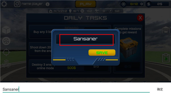 1、首先下载并安装本站提供的是沙盒汽车工艺模拟器,打开,先随意输入英文名称