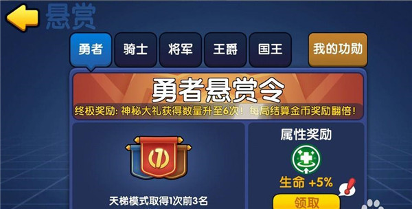 1、【传奇宝箱每日领】 自订阅日起每天将会获得一个免费传奇宝箱,持续1周。 2、【奖励收益大翻倍】 游戏中的日常奖励与金币翻倍奖通过视频翻3倍的奖励,全部变为6倍,持续1周。 3、【结算必出战利品】 游戏结算时,战利品选择界面100%弹出,持续1周。 4、【开局实力大提升】 主界面观看视频开局升级至5级变为提升至8级,持续1周游戏玩法