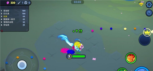 2、天梯模式非常实用的技巧,我们在地图上初始会有很多移动的小泥团,这个彩色小泥团会绕圈走,顺时针逆时针都有,这个时候我们想要快速升级就是要逆着这些小泥团的方向,这样可以让你快速吃到最多的泥团