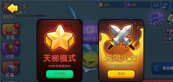 1、橡皮泥大作战是一款非常容易上瘾的游戏,初期我们会有两种模式,天梯模式就是初始1级慢慢吃经验升级打斗,无限乱斗就是一开始就满级,技能无限,就是玩手速的
