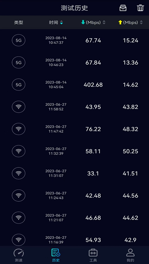 1、应用内无烦人的广告植入; 2、界面简洁友好,操作简单; 3、支持自动/手动寻找测试服务器; 4、拥有大量功能丰富的便民工具和专业工具; 5、测试结果呈现Ping时延、上传、下载的速率,抖动,以及丢包率等指标以及测试结果的整体排名; 6、独特的测速测试PK功能,可以在好友间进行趣味PK; 7、测试历史记录自动保存在手机上,供后续对比查询。Speedtest5g测速软件功能