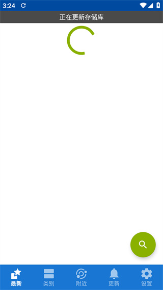 1、在本站下载安装好F-Droid,打开软件,会显示正在更新数据库,这时我们还没连接到F-Droid国内源,所以无法浏览到安卓软件,点击右下角的“设置”。