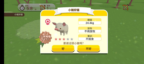 1、经典的养成经营玩法,很适合打发时间,游戏轻松有趣,值得一玩。 2、精致的游戏设定,游戏中的各项设定都比较还原,带来真实有趣的体验。 3、玩家在游戏中需要狩猎猪猪并将它们放在自己的养猪场进行养殖。 4、给猪猪喂食,让它们不断的长大,但同时还需要注意卫生问题。 5、精心照顾猪猪的各个方面,让它们健康的成长,感受养猪乐趣。更新日志
