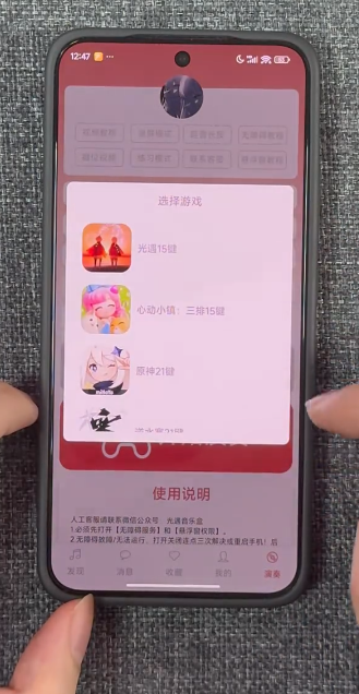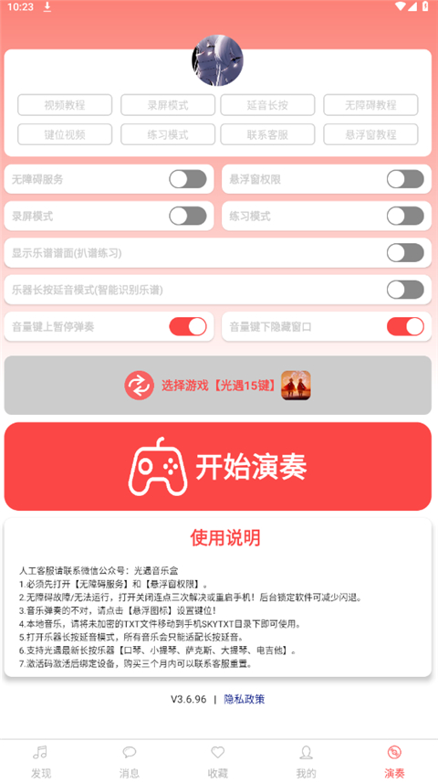 3、进入演奏界面开启无障碍服务,以及悬浮窗权限、录屏模式