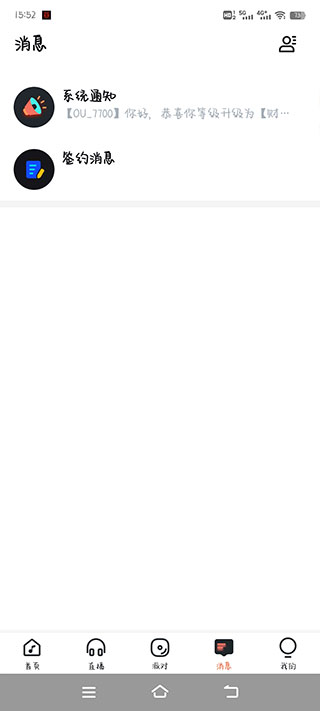 3、点击消息,可以看到自己的关注用户以及粉丝发送的私信等。