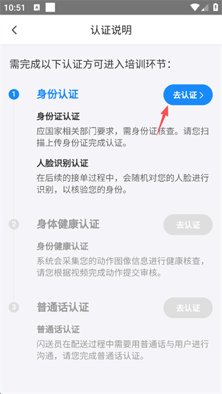 6、随后进行身份认证,点击屏幕右上角的“去认证”。