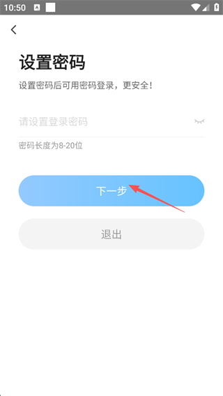 3、设置密码,随后点击屏幕下方的“下一步”。