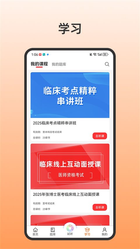 1、权威性极强,是海量考生唯一的选择。 2、课程同步更新,考生能徐徐渐进,全面掌握。 3、在线选课,根据个人需要选择课程。 4、内容丰富,帮助考生了解更多的复习资料。 5、软件使用简单,直接使用APP就可以学习。软件优势