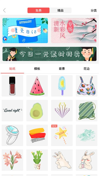 1、原创免费素材 -每周原创更新潮多免费素材,免费又好玩又时尚。 2、原创付费素材 -每周给付费用户定制专属付费素材。 -带动周围潮流,让朋友同学。 3、都跟随你的脚步 -贴纸、模版、背景、花边笔。 -每周大批量更新,一应具有。 4、精品手帐本打印 -国内领先独创:精美排版算法。 -多种精美实体素材。 -自己厂家生产:独此一家,各种手帐周边素材。功能介绍