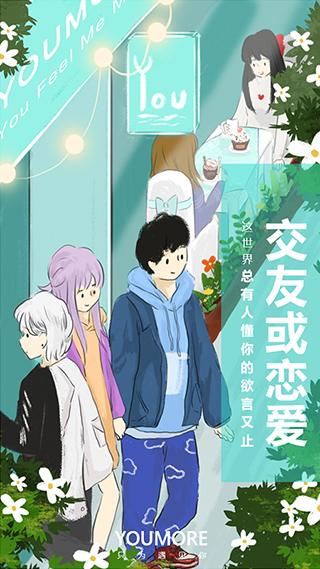 【志同道合,交友,约会,多种社交模式自由切换】在YOUMORE,你可以结识志同道合的新朋友和恋人。你可以在朋友模式和情人模式之间自由切换。在情人模式下,你可以根据自己的性取向选择异性恋或同性恋模式。尤莫尔坚持营造开放、包容、诚实、平等、尊重的社会氛围。