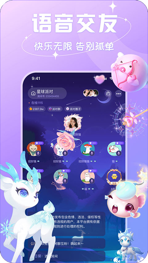 沉浸式语音互动、闲聊、扩列、听歌等你加入。不需要你主动也可以参与其中!