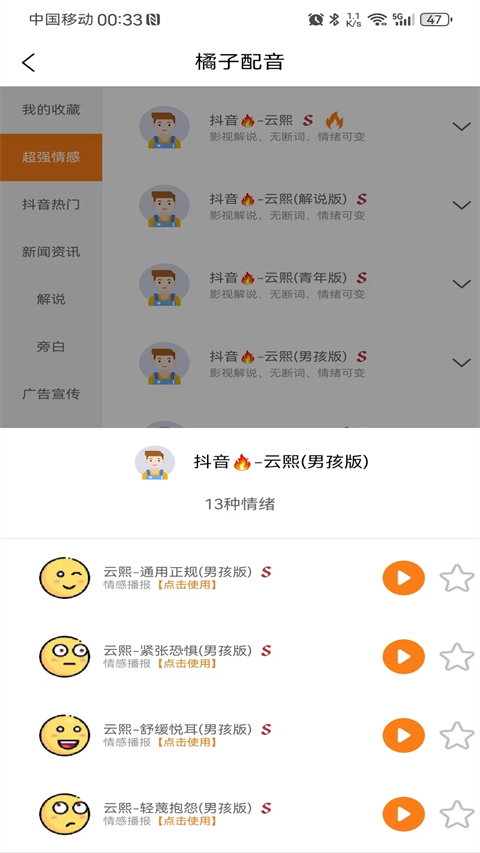 1、【游戏变声】 可将语音包分享到各种当下流行的游戏,玩游戏更畅快! 2、【内置语音包】 尽情享受超多精彩语音包,天天动听你的耳朵! 3、【自定义变声】 制作属于自己的专属变声,试试自定义变声吧!橘子配音app如何导出配音?