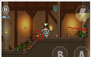 1、战前准备 红色箭头所指的门后面就是和BOSS战斗的地方啦,在这之前会从敌人身上掉落鸡腿,如图红色圆圈内所示。吃掉鸡腿就能补满生命值,玩家一定要在战斗前做好准备。