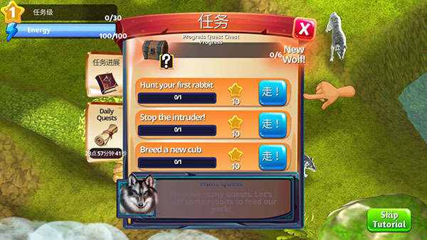 1、【拓展您的领土】 与您的狼群称霸虚拟世界。选择您的终极团队并与其他强大的敌人如熊、大象、美洲豹和老虎等进行斗争。消灭您的敌人以拓展您的领土并收集奖励。或者您可选择猎人的生活。在您探索广袤丛林的同时搜寻猎物。猎捕野生动物来喂养您的狼,让它们长大并保持强壮以为史诗级的战役做准备! 2、【升级与进化】 解锁新的狼并把它们带到您的兽穴。用您捕猎的战利品喂养狼,使它们从狼崽长成成狼。当您拥有了2只强壮的狼,您就可以开发它们,让它们的能力变得更强壮! 3、【繁育狼崽】 将两只狼一起喂养,以生出小狼崽!细心抚养您的小狼,有一天它们将需要成为家族的领导者。 4、【不是所有的狼都是平等的】 头狼是自豪的领袖,而贝塔狼则能捍卫您的群落。猎人狼能抓住最隐蔽的猎物。奥米茄狼很弱,但是它们能在战斗中治愈您的整个群落。每头狼都有不同的战斗和猎捕能力,所以请审慎选择您的团队! 5、【实时多玩家游戏】 狼进化论是一款互动的大型多人在线游戏。在您探索丛林并完成挑战性的任务的同时与来自世界各地的朋友聊天并扮演角色。 6、【现实主义】 欢迎来到终极逼真的狼模拟游戏,在这里每只狼都会依据它们的性格进行表现。阿尔法狼会自豪地行走, 而奥米茄狼则畏缩不前。明快的视觉效果将会把您带入一个遥远的、充满其他大大小小动物的3D虚拟世界。您可以在其中探索、战斗和捕猎。不要忘了,您还要哺育和喂养您的狼群并教会它们各种技巧和攻击方式!狼进化论苹果版怎么玩