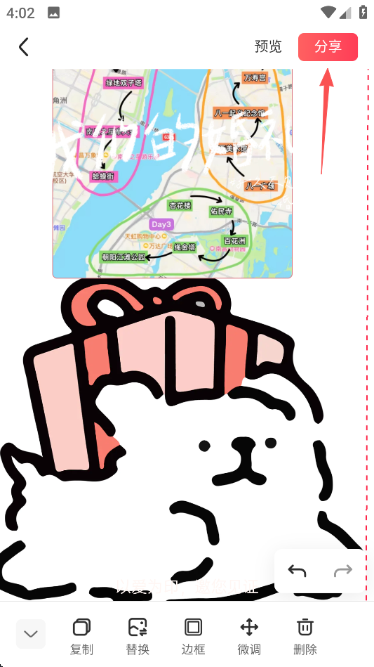 9、完成后,点击屏幕右上角的“分享”。