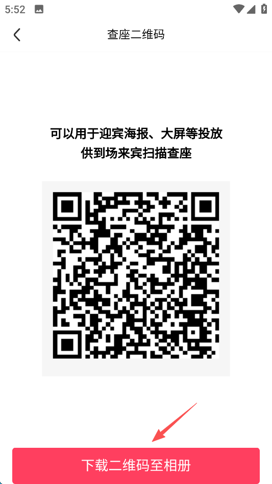 9、随后点击屏幕下方的“下载二维码至相册”,用于婚礼来宾扫码入座。